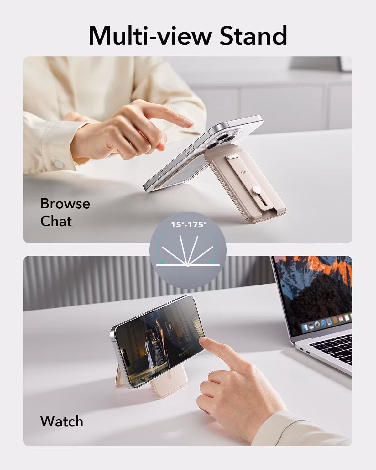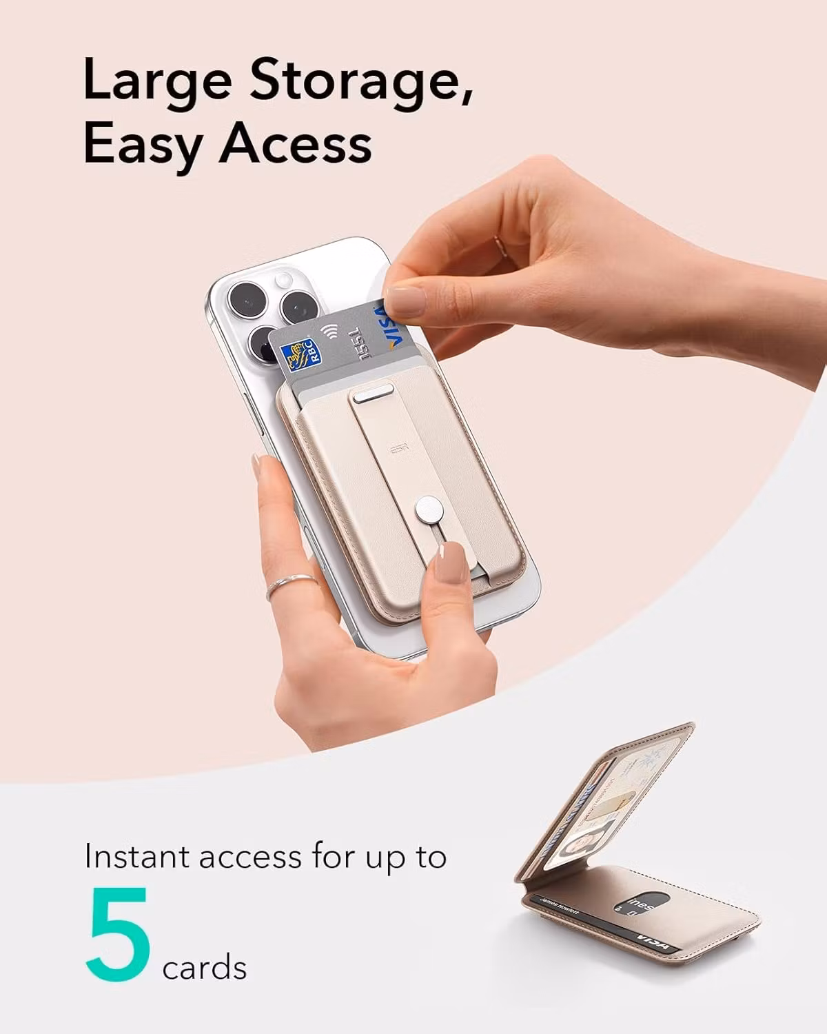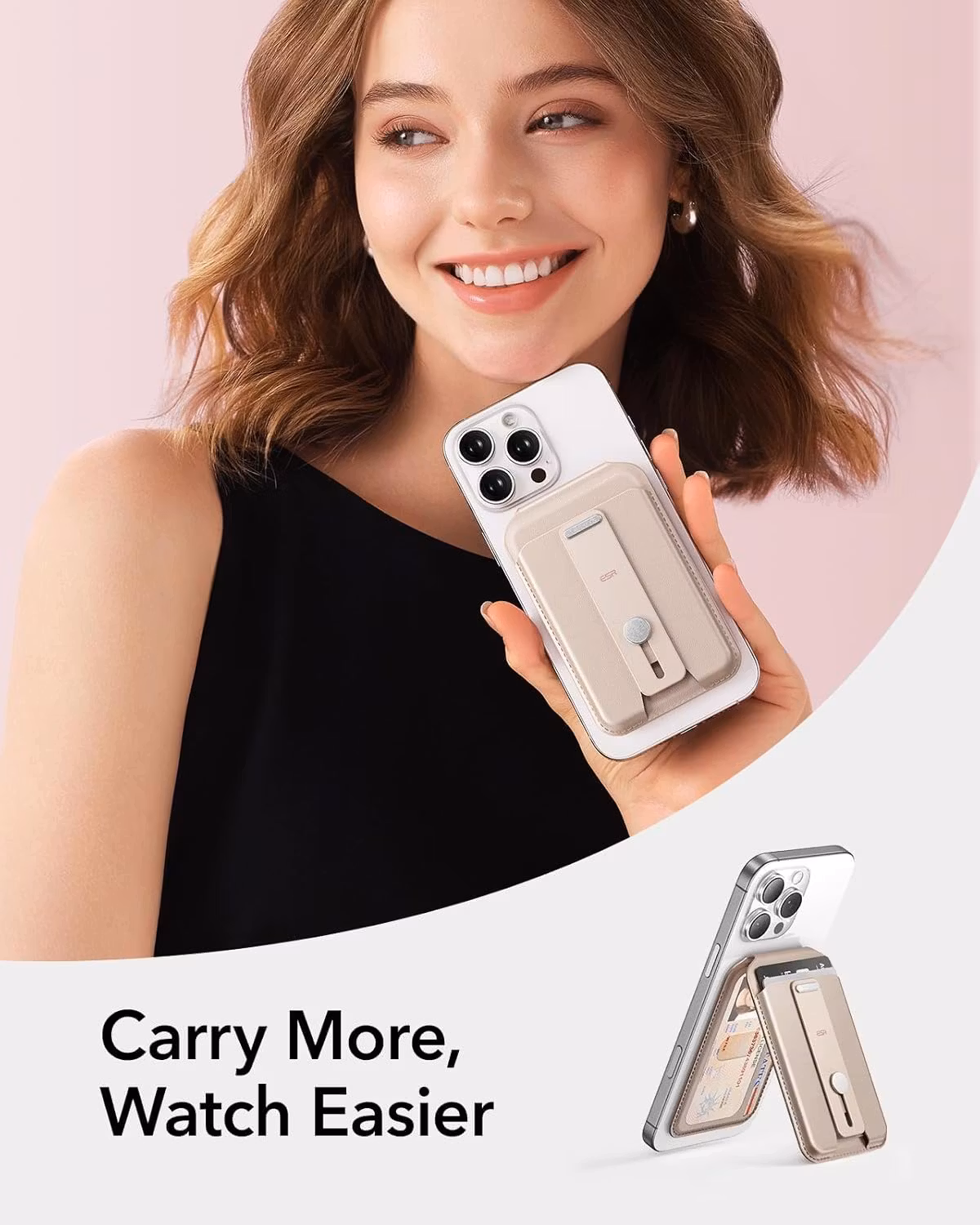 ESR Grip Wallet Stand med starka HaloLock-magneter kombinerar plånbok, grepp och stativ i en smart, elegant och säker enhet.