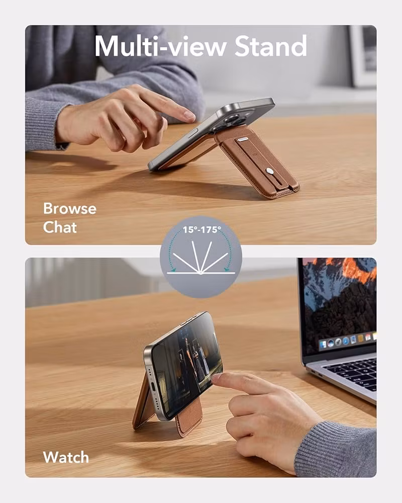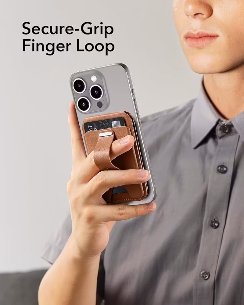 ESR Grip Wallet Stand med starka HaloLock-magneter kombinerar plånbok, grepp och stativ i en smart, elegant och säker enhet.