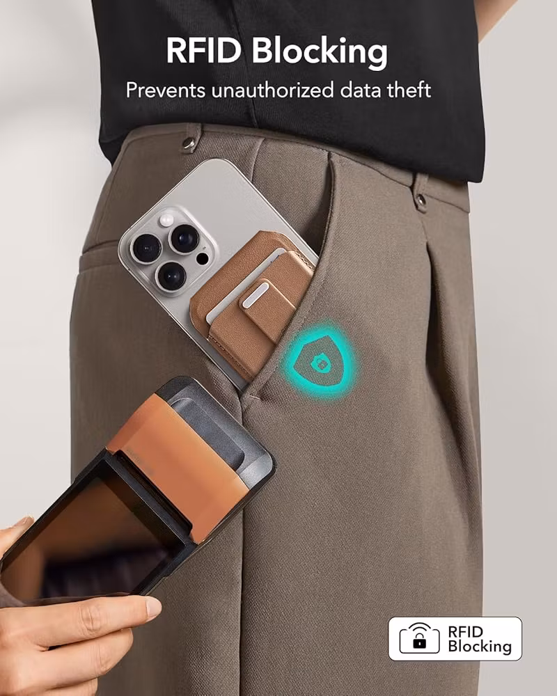 Tack vare ESR:s HaloLock™-teknik sitter plånboken ordentligt fast med kraftfulla magneter.