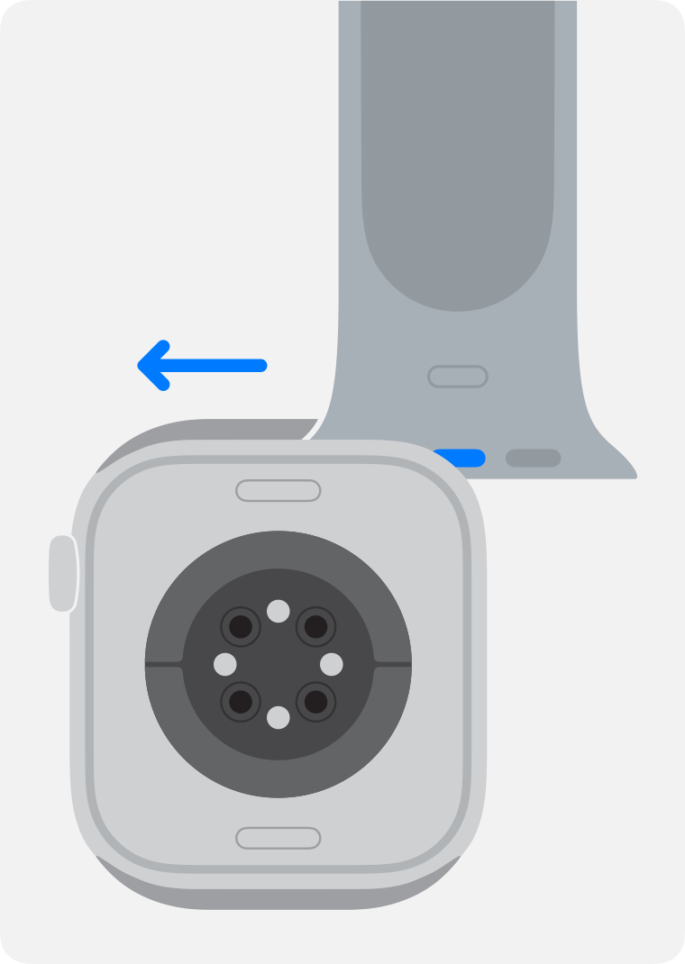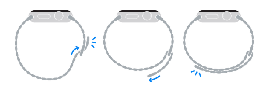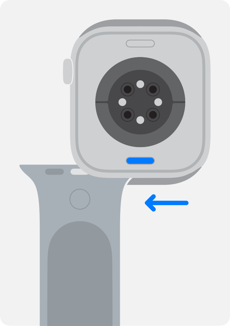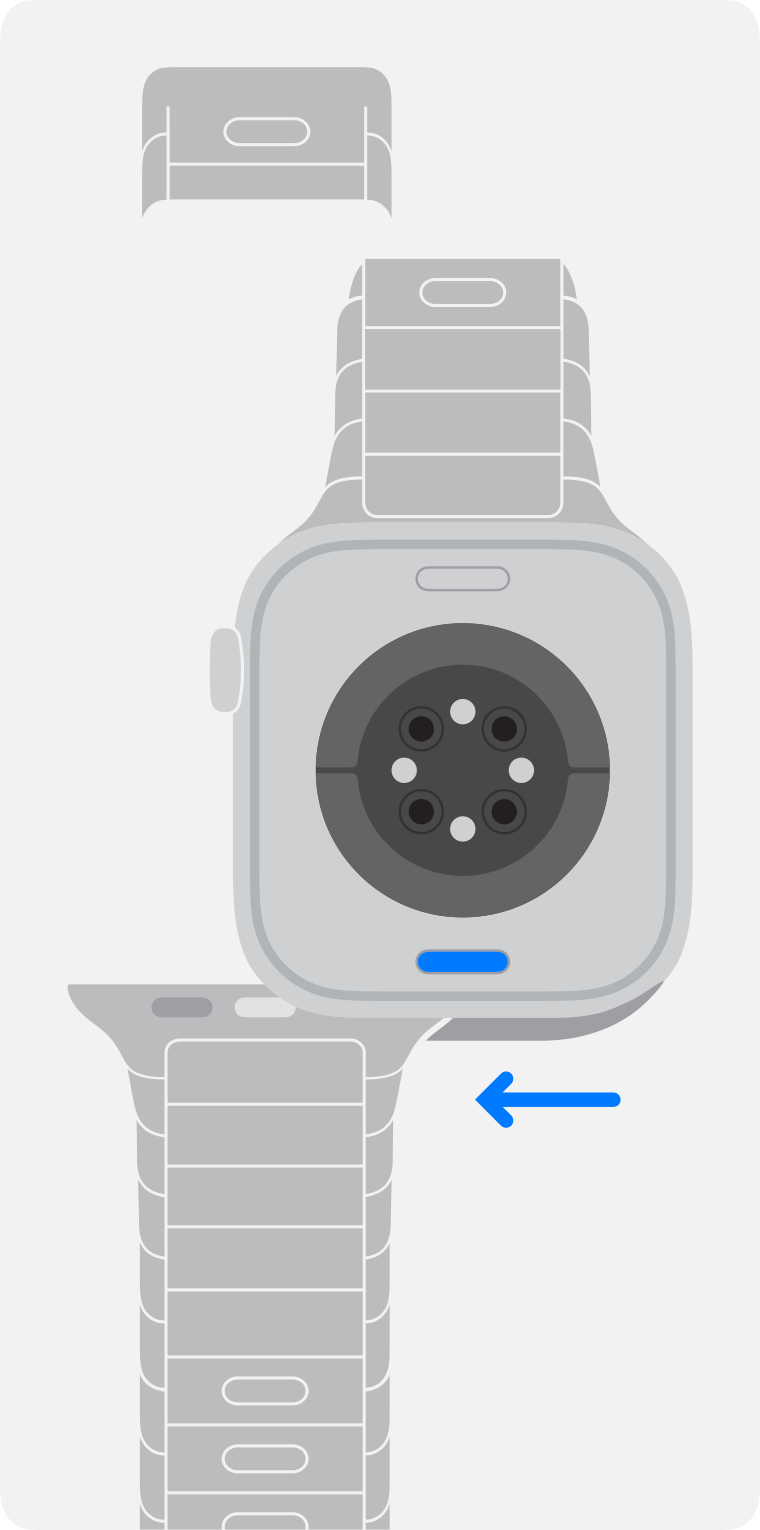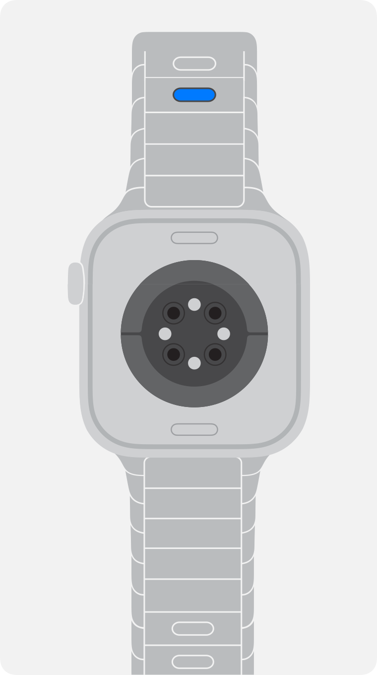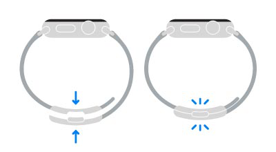 3. Håll in knappen för armbandslossning på Apple Watch och dra sedan armbandet åt sidan för att frigöra det.