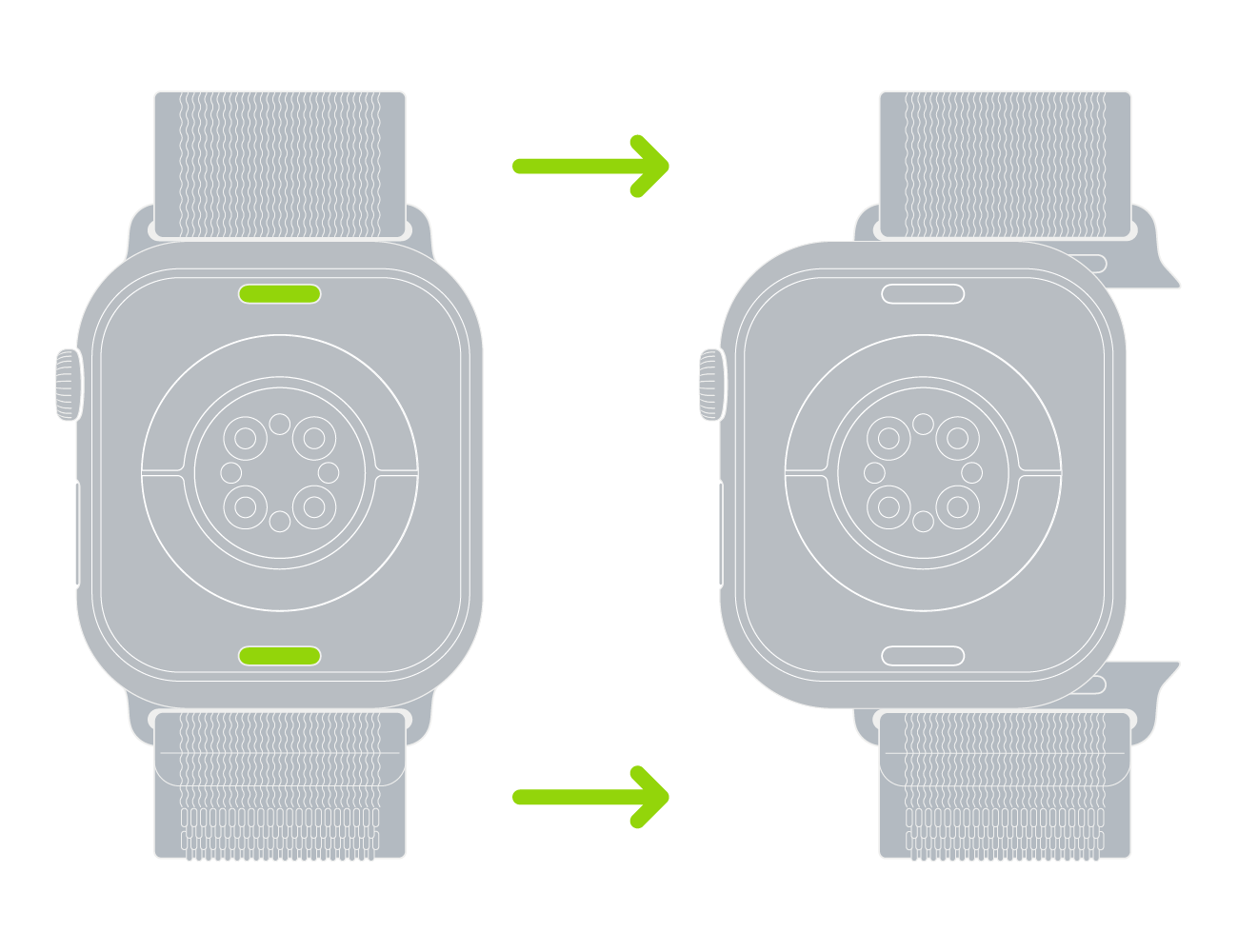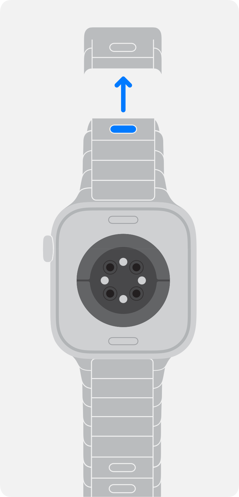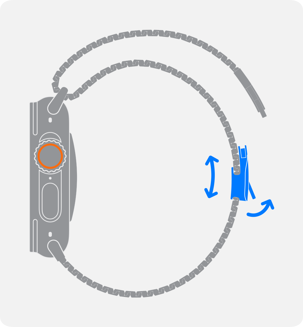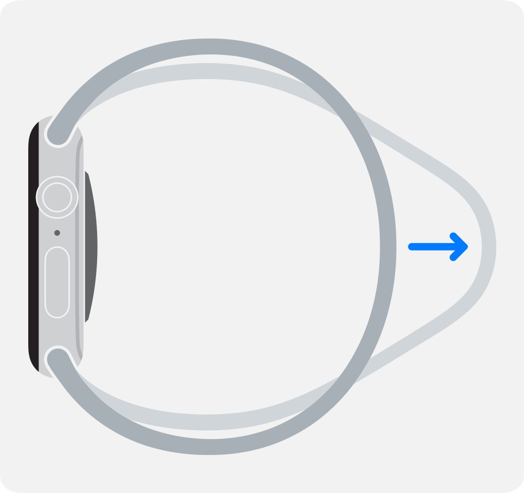 3. Håll in knappen för armbandslossning på Apple Watch och dra sedan armbandet åt sidan för att frigöra det.