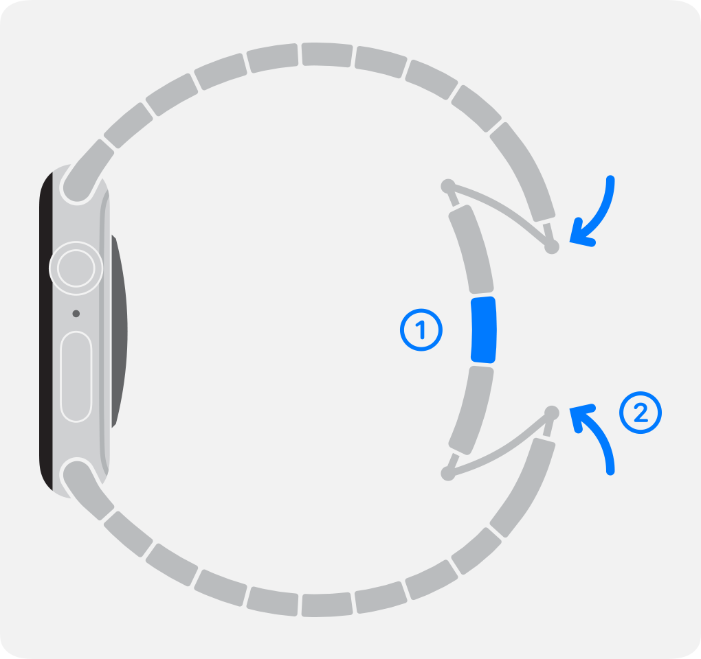 2. Om du har ett länkarmband trycker du på frigöringsknappen på en länk för att dela armbandet i två delar.