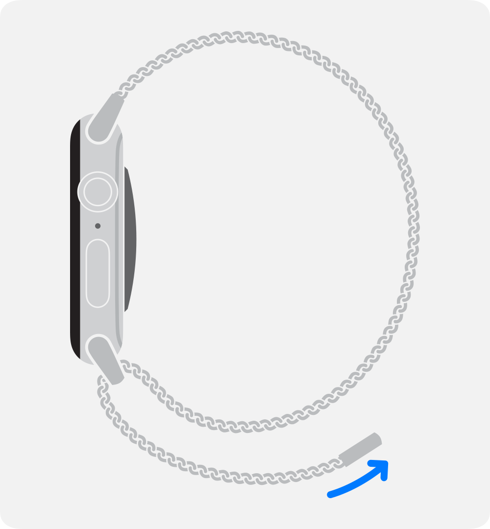 Placera klockan på din handled och svep den långa remmen över den korta för bästa magnetiska styrka.