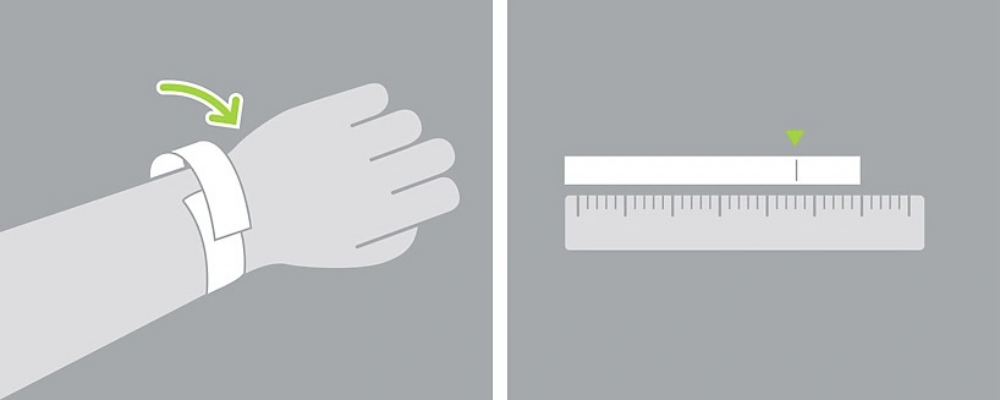 1. Svep ett band tajt runt din handled och gör en markering där änden slutar.